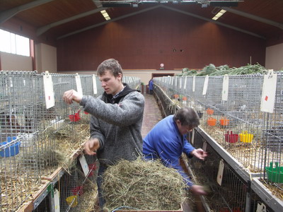 Fütterung von Heu durch Helfer